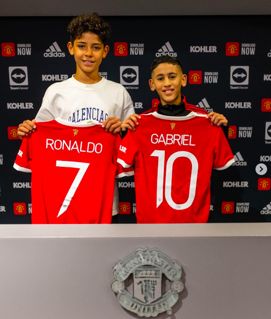 与C罗长子迷你罗一起签约曼联的加布里埃尔,实际上目前还没有达到被称为红魔青训的标准。按照「户口本」的规定,在15岁至21岁期间为俱乐部效力满3个赛季,或者36个月,才算本俱乐部青训资格球员。加布里埃尔2022年2月加盟俱乐部,但他今年10月6日才年满15岁,进入起算年纪。
